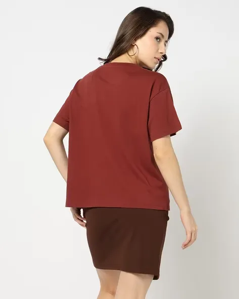 Women Cotton Regular Fit Crew-Neck T-Shirt