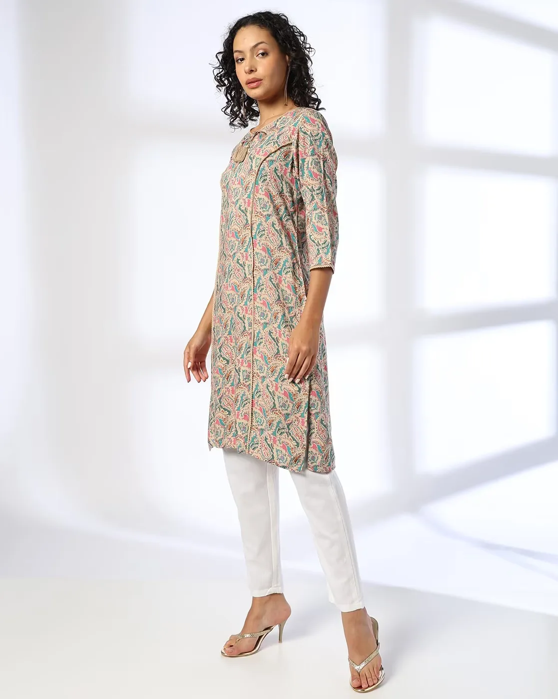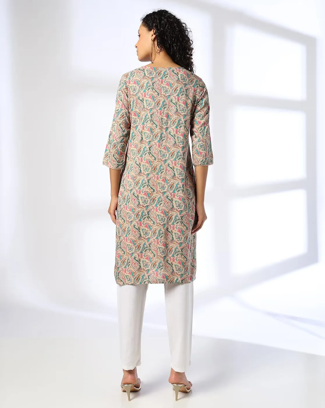 Women Paisley Print Straight Kurta with Neck Tie-Up