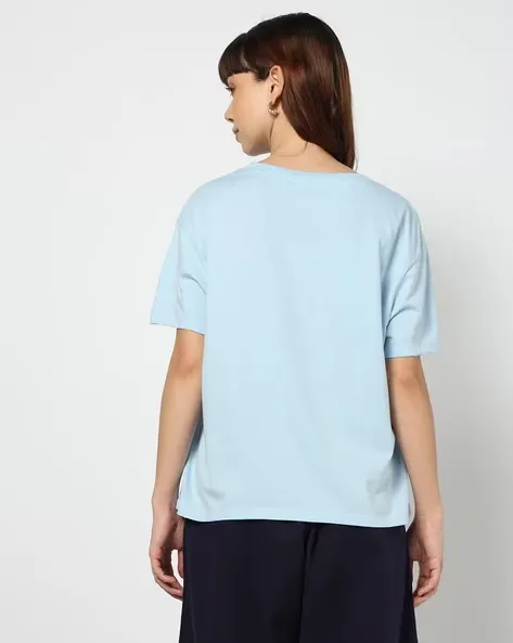 Women Cotton Regular Fit Crew-Neck T-Shirt